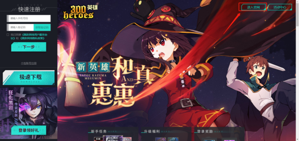 第一步,打开浏览器,搜索《300英雄》进入该游戏的官方网站;