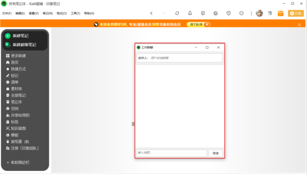 PC版印象笔记软件中的工作群聊功能的作用是什么