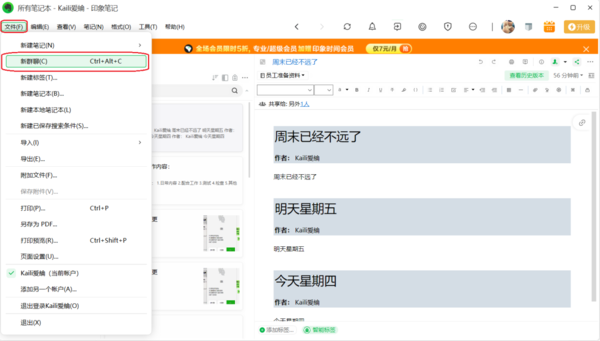 只需3步即可将PC印象笔记的多条笔记合并为一条