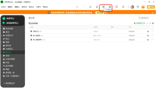 PC版印象笔记软件中工作群聊功能的位置在哪里