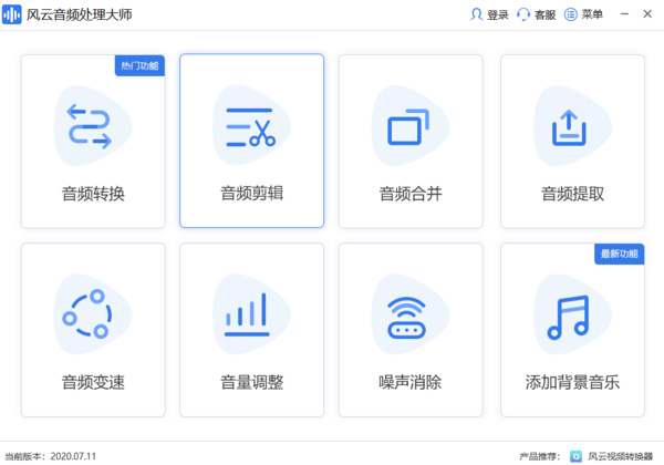 而风云音频处理大师则很好的解决了这点,虽然界面看起来可能略显繁琐了,但是作为新用户,可以第一时间知道自己要进哪个模块,引导性很好。