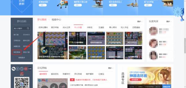 第一步,我们需先进入梦幻西游官方网站,拖动鼠标滚轮至【梦幻百科】处(左侧);