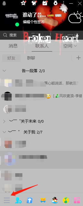 1:从QQ界面下方中找到主菜单,即如图的图标。
