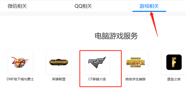 4.?这个时候弹出新的页面,在这里下拉找到游戏相关里的cf穿越火线图标。