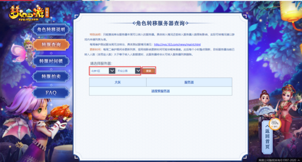 梦幻西游角色转移的服务器的注意事项说明: