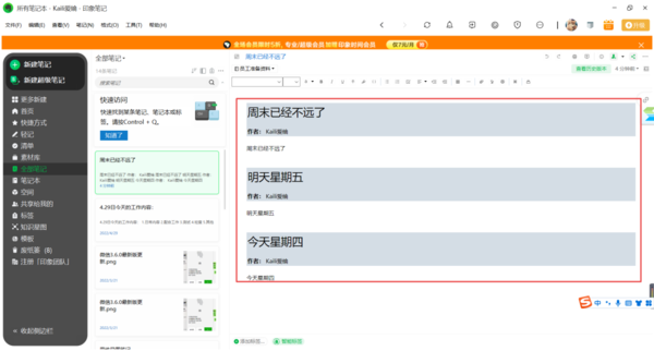 3、最后,我们就可以将PC版印象笔记中的多条笔记内容合并为一条笔记内容了。