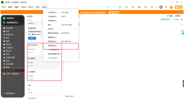 5、而如果想要保留原有的笔记内容的话,我们可以在印象笔记的【废纸篓】中,对笔记内容进行恢复。