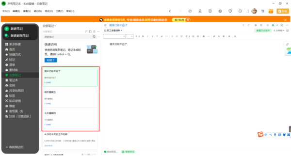 4、只不过这里需要注意的是,当我们将印象笔记中的多条印象笔记内容合并为一条笔记内容后,印象笔记会把原先单独的笔记内容删除掉。