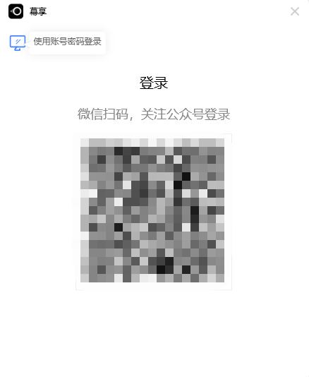 在幕享主界面右上角点击一个人形样式的选项后会跳出登录的界面,这里首选的登录方式是微信扫码登录,当然也可以选择使用账号密码来登录,点击“使用账号密码登录”就可以了。
