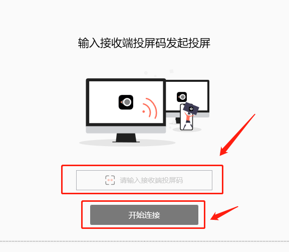 如果选择使用电脑向其它设备来投屏,就选择电脑投屏,在接收投屏的设备中找到投屏码,然后在电脑上输入,最后点击下方的“开始连接”就可以使用电脑向其它设备中来投屏播放视频了。