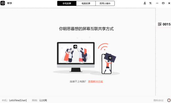 下载安装好幕享软件后,打开软件可以看到两种投屏方式,分别是:手机投屏和电脑投屏。