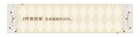 两件套效果增加20%血量,看起来像是三星圣遗物冒险家两件套效果的升级版。
