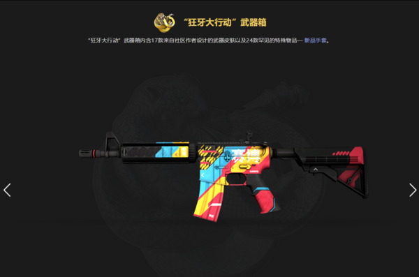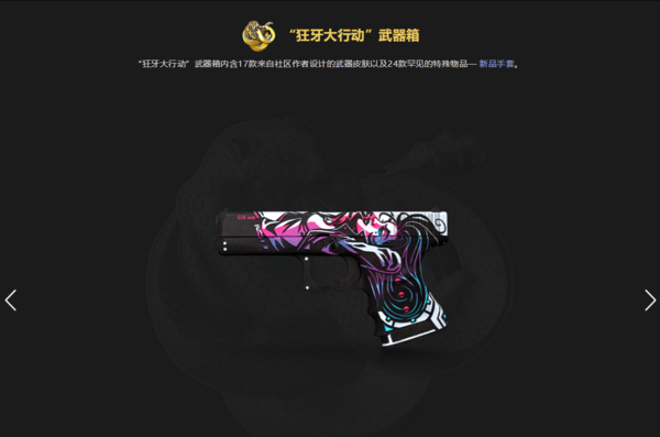 CSGO是反恐精英:全球攻势游戏的简称,它是一款第一人称的射击团队竞技类游戏,传承经典,在枪林弹雨建争当战场上的精英。而CSGO在狂牙大行动结束之后,上线了新的箱子——蛇咬武器箱,而通过开启这个箱子,就可以获得多款新的武器皮肤。
