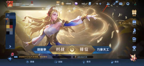 1、运行王者荣耀,登录账号进入游戏主界面;