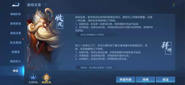 但是拜师时,师父需要比徒弟高一个段位才行。拜师的具体方法就介绍完了,如果有新玩家想要在游戏中找个师父的话可以按照本文介绍的方法拜师了,希望这篇文章可以帮助大家!