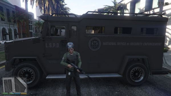 隶属于国安局,在玩家获得4~5星通缉的时候作为路障出现。防弹能力和防爆能力非常好,也非常笨重,车窗非常小,所以驾驶员非常难以受到伤害,而且一发RPG送不走。