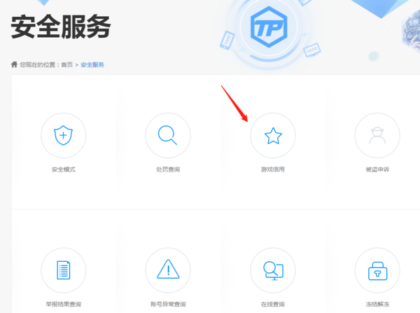 一、在玩家打开穿越火线游戏后,在电脑桌面右下角的任务栏处可以看到【腾讯游戏安全中心】的产品图标TP,点击图标打开【腾讯游戏安全中心】窗口,在窗口首页点击【游戏信用】菜单,就可以看到信用星级;