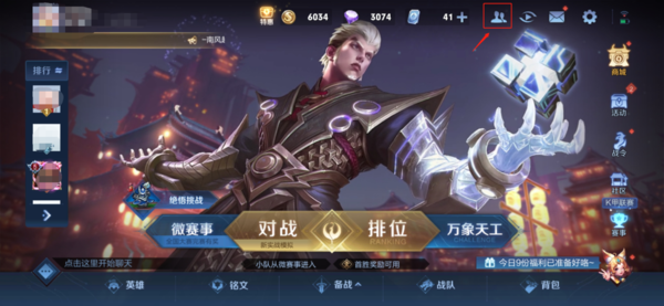 首先,我们先登录游戏,进入主界面后,在右上角可以看到好友界面图标;