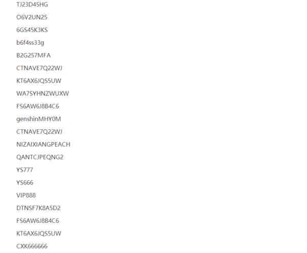 原神兑换码,如下图所示,有需要的话直接拿去用就可以了。