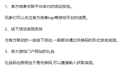 原神兑换码的获取途径一般有以下这3种,如下图所示。