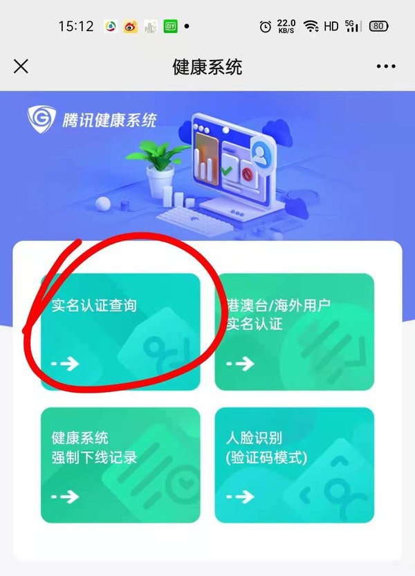 第四步,进入健康系统页面之后点击第一个选项【实名认证查询】。