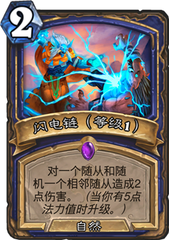 对一个随从和随机的一个相邻的随从造成2点伤害(当你有5点法力值时升级)