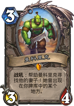 战吼:帮助曼科里克寻找他的妻子!她曾出现在你牌库中的某个地方