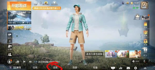 第一步,打开进入和平精英游戏中,点击主页下方的【仓库】。