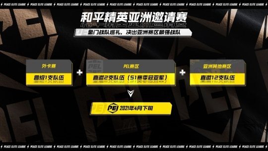 四月份,PEL?S1赛季冠亚军队伍将代表PEL赛区参加和平精英亚洲邀请赛,同时赛事也将邀请12支亚洲各地的冠亚军队伍参加,而最后一个参赛名额将通过外卡赛决出。