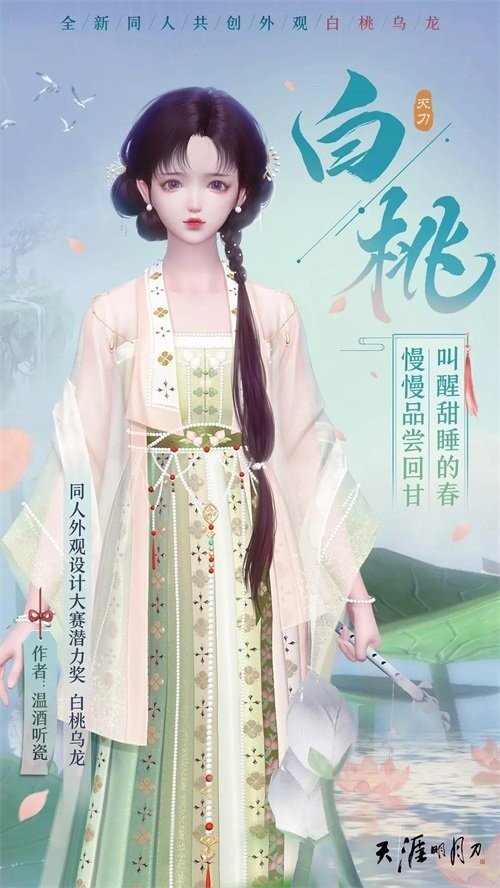 【白桃乌龙】实装确定!淡淡的香,淡淡的甜;春光明媚,白桃清香;设计来自同人作者@温酒听瓷,为2020年天刀IP五周年外观设计大赛潜力奖作品,将在本月与少侠们见面。