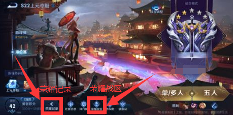 第二步,进入排位界面之后,点击【荣耀记录】,再点击【荣耀战区】进入荣耀称号界面。