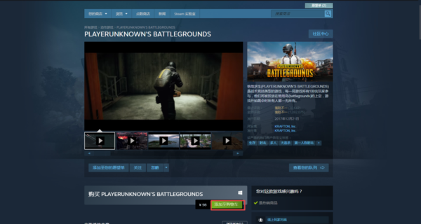 第三步,进入到游戏的详细介绍界面当中后,我们将页面进行下滑,然后找到【添加至购物车】按钮,然后在购物车中进行支付,支付成功后游戏也就购买成功了。