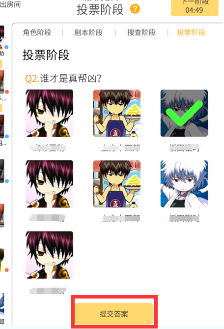 以上的一切都是为这一步做准备的,投票选出你所认为的幕后真相,然后点击【提交答案】。