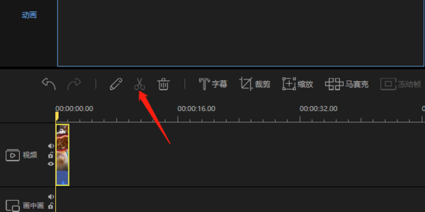 当我们插入了素材后如何操作呢,点击本地素材,选择视频点击+号添加,然后在下方选中素材,按住鼠标左键不松,可以拖动至视频前或者后面,添加到视频途中,需要把视频进度播放到需要插入素材的时间点,点击暂停,然后点击剪刀图标,