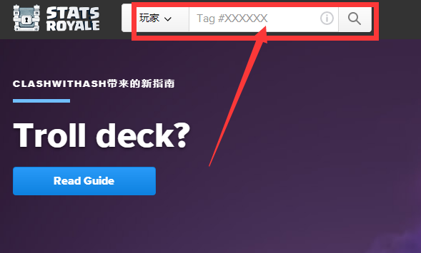 第二步,打开一个空白网页输入网址【https://statsroyale.com/zh】,并进入到该网页,这就是皇室战争游戏的官方查询网页,在输入框中粘贴一下你刚才复制的游戏【标签tag】,点后面的查询按钮即可。