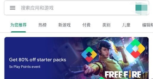 在所有准备工作都完成之后,打开加速器,然后打开谷歌的play商店登陆自己的谷歌帐号,就能够看到如上图的商店界面了。我们只需要在搜索栏中直接搜索“Free?Fire”就可以了。