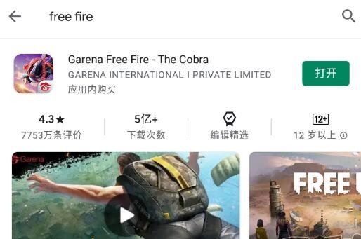 正常情况下搜索结果第一个就是《Free?Fire》的国际服了,由大家熟悉的Garena代理运营。搜索到《Free?Fire》之后我们就直接点击搜索结果,进入详情页进行安装就可以了。小编我这里已经下载好了,所以可以直接打开游戏。