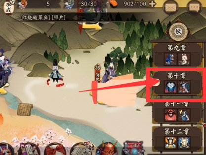 第二步,接下来就到了【探索地图】页面,点击右边章节选择的【第十章】选项。
