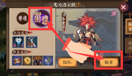 第三步,模式选择处点击【困难】选项,并点击右下方的【探索】。