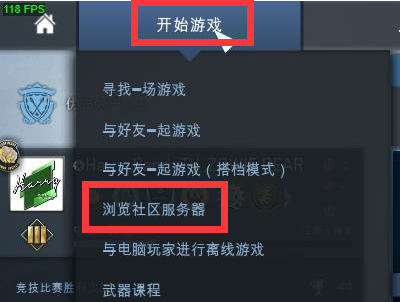第一步,打开并登录CSGO游戏,点击【开启游戏】。在接下来的模式选择页面中,我们点击选择【社区服务器浏览器】选项。