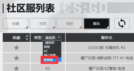 第一步,登录游戏进入主页,进入【社区服务器列表】,然后点击【娱乐】选项卡。