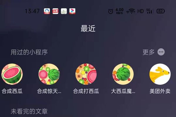 再就是手机玩合成大西瓜,也可以在4399游戏盒手机玩。小编在这里试过的是从微信小程序进入的,里面有好几个版本的合成大西瓜,我已经试过了4个版本,玩法形式都差不多,手感最好的就是下图的第一个和最后一个,手感最差的就是第二个。就是手感最好的第一个合成西瓜进入的有点慢,可能是玩家众多吧。
