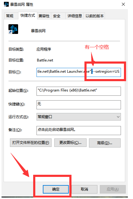 第二步,这样下载是国服,还需要改为国际服才行。对客户端图标鼠标右击然后点击选择【属性】,点击进入【快捷方式】模块,把【目标】选项后面的内容添加一个后缀【?--setregiUS】,这里复制的时候一定要复制完全,在此字段前面是一个【空格】不要漏掉哟。最后,点击【确定】,重启使命召唤战区游戏就直接进入国际服了。