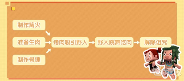 第二步,这时,附近的野人闻到了烤肉的香味儿后就会过来,而被烤肉香味吸引过来的野人会在篝火的前面跳舞狂欢。