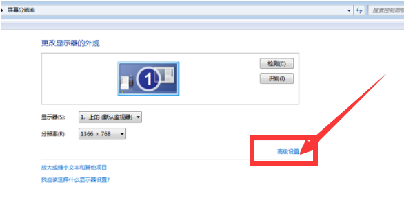 第二步,在分辨率设置对话框,点击【高级设置】。