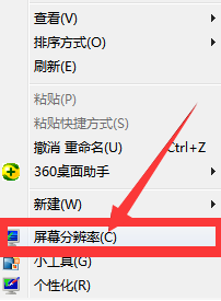 第一步,打开电脑,在电脑桌面的空白处鼠标右击,然后在下拉框中点击【屏幕分辨率】选项。