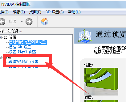 第五步,在新页面左侧的【视频】设置处,点击【调整视频颜色设置】。