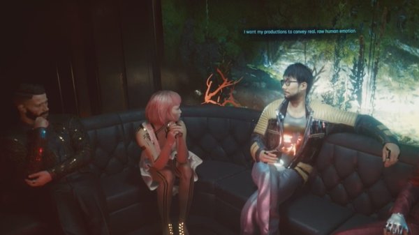 在一个角落里,玩家遇到了一位叫大岛(Oshima)的NPC,他说的是日语,当然你的人工耳蜗可以提供即时翻译。大岛说他在东京有一个研究团队,正在试图捕捉人类的全部情感,“我希望自己的作品能传达真实、原始的情绪”,他解释道:“比如快乐和忧虑相结合的复杂情绪,或是隐藏在平静下的焦虑的感觉。”
