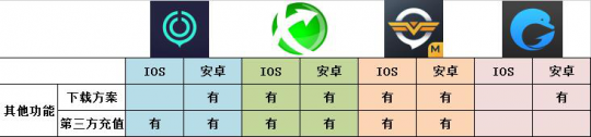 4款加速器都提供游戏下载方案,除了海豚加速器,包括UU加速器在内的其他三款加速器还为玩家提供第三方充值功能,lol手游玩家为游戏充值更加方便,而且安全可靠。