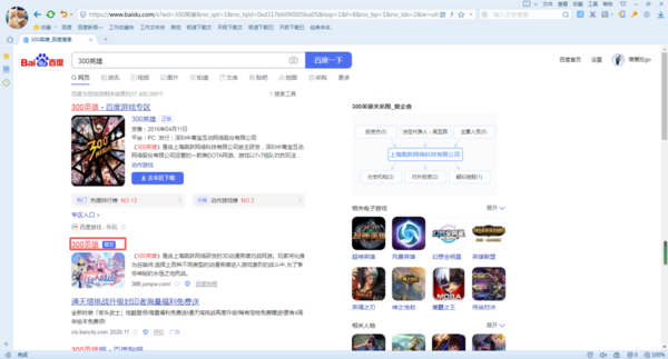 第一步,在电脑的浏览器当中,输入【300英雄】,接着在网页当中找到300英雄游戏的官方网站,并点击进入。